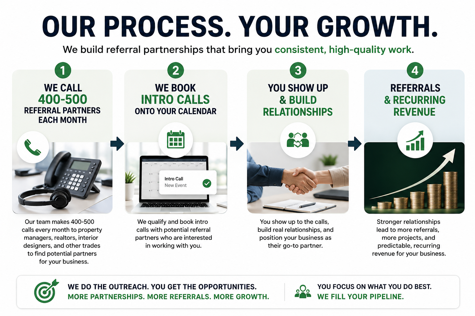 We build long-term referral partnerships that keep sending you business month after month.